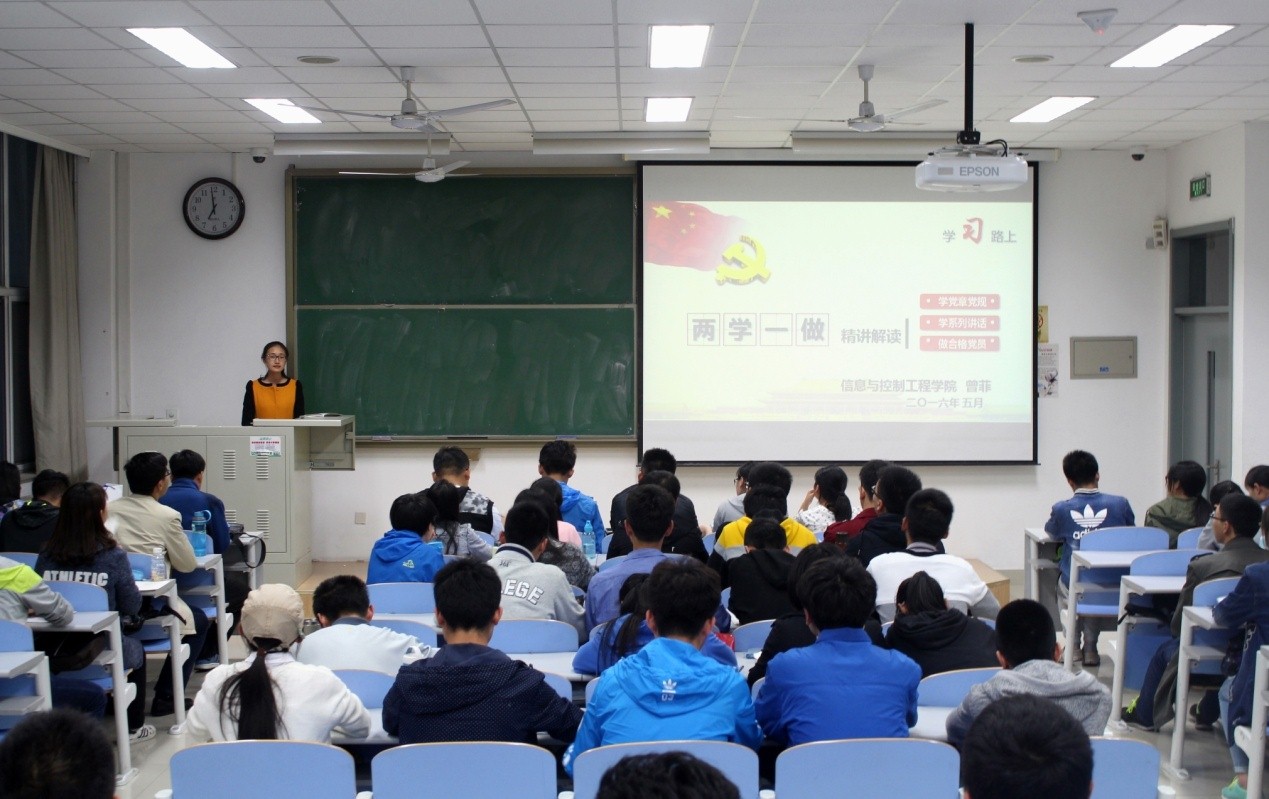 曾菲老师以“两学一做”学习视频开场,并结合ppt向各位党员、入党积极分子讲述了“两学一做”的内容及意义,强调了关心时政的重要性,叮嘱各位同学要经常学习党的重要讲话,提升党性修养,争做合格党员;要加强微博等新媒体阵地的建设,做到有选择、有重点的学习理论知识。之后同学们分组讨论关于“做合格党员――讲政治,有信念”的学习体会,并依次派出小组代表发言进行交流学习。15级党员陈学范率先发言,讲述了自己的学习心得。小组代表丁健说道:“党员要有坚定的信念,信念就是力量;我们要主动地学习党的理论知识和重要讲话精神,了解才会认同,才能坚持和践行”。