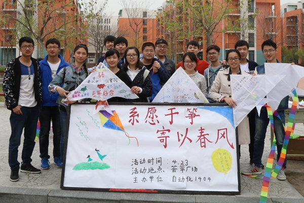 为提高大学生动手能力和审美情趣,以及对中华民族优秀传统文化的追溯。4月23日,自动化1404班于荟萃广场开展主题为“系愿于筝,寄以春风”的活动。