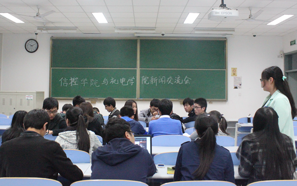 为提高新闻的宣传力度,促进学院新闻工作更好更快地发展,4月17日晚,我院与机电学院在南教207开展了新闻宣传交流会。两院新闻宣传工作负责人及部分骨干成员参加了此次会议。