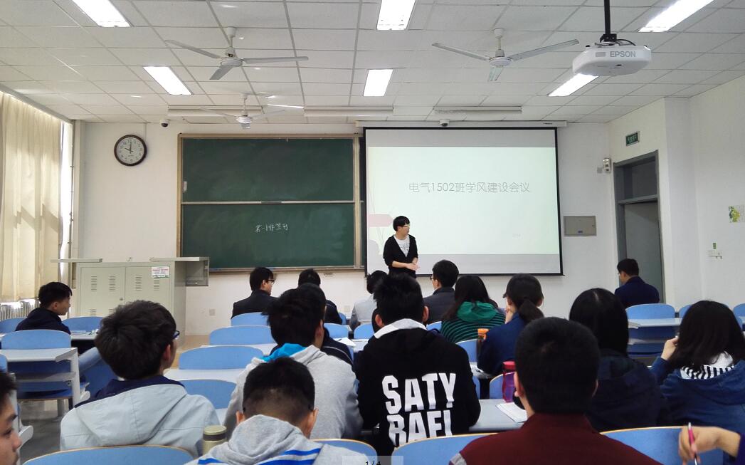 为响应我院优良学风建设的号召,加强同学们对学风建设重要性的理解,4月17日,电气1502班在南教108召开关于优良学风建设的主题班会,此次会议邀请到班主任李鹏老师出席。