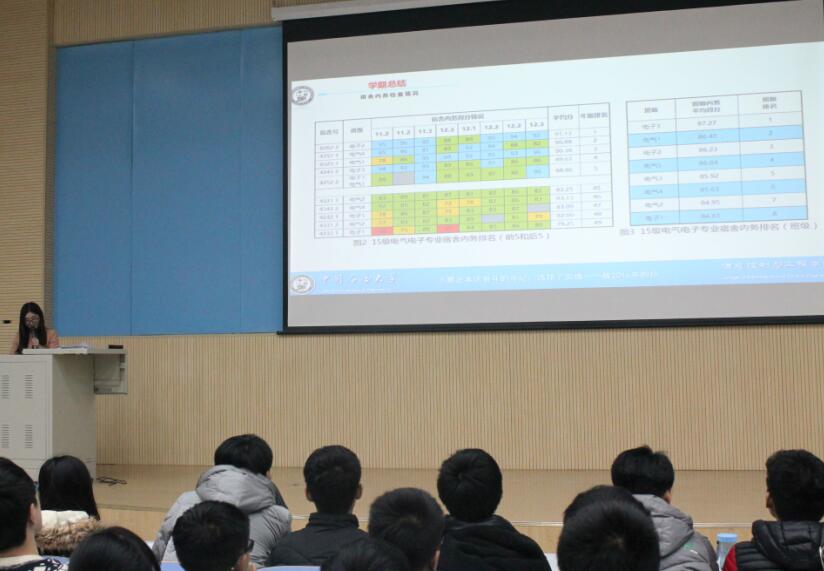 为严肃考风考纪、树立良好学风,引导同学们积极备战期末考试,我院于1月3日晚7点在南教300召开了15级电气电子专业年级大会。本次会议由电气电子专业辅导员段诗云主讲,电气电子专业全体同学参加。