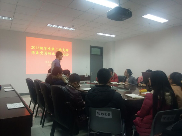 为加强党支部党员队伍建设,我院于12月29日在工科E1325举行2013级学生第二党支部预备党员转正大会。支部书记王宁、组织委员刘希成、宣传委员郭静三位正式党员以及支部全体预备党员出席会议。