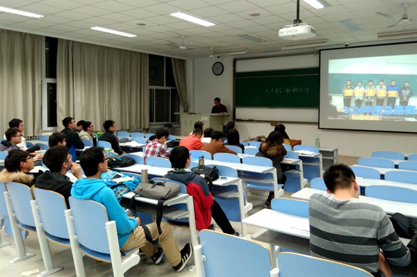 大会伊始,班长吕文健播放了精心制作的视频,视频记录了班级同学入学一年多来班级举行的集体活动,帮助班级同学重拾大一记忆。随后,吕文健通过一个简短的演讲对大二开学以来的班级情况进行了总结,并强调了班级目前所需要解决的问题。随后,参加“卓越工程师计划”的四位同学受邀向班级成员分享了在卓越班的学习经验。曾获国家级英语一等奖的赵晨辰讲解了关于四级英语的考试技巧;学科代表讲解了各科的学习方法,帮助同学们的更有效的复习。吕文健最后鼓励同学们:“不抛弃,不放弃”,踏实复习,才能有所回报。