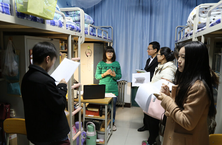 11月30日晚,我院开展十佳宿舍的走访评分活动,评选出2015年学院十佳学生宿舍。13级辅导员王宁、14级辅导员王力禾以及学生会的部分骨干成员作为评委参与了本次评分活动。