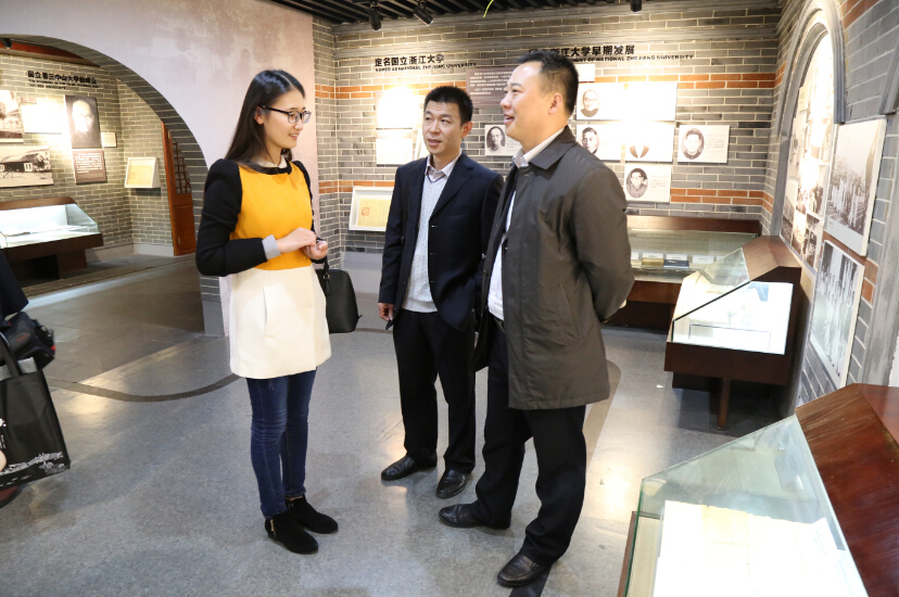 浙大控制学院党委副书记陪同与会人员参观浙江大学校史馆(摄影:王力禾)