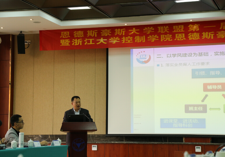 恩德斯豪斯公司副总经理王卓军教授、浙江大学学生工作部部长邬小撑教授、浙江大学控制学院院长张光新教授、浙江大学控制学院党委书记王慧教授等出席会议。浙江大学学生工作部部长邬小撑致辞并讲话,对企业促进高校加强学生素质教育工作给予高度评价,对浙江大学的学生工作理念、工作经验进行分享。浙江大学、上海交通大学、华中科技大学、中国石油大学等高校围绕大学生综合素质培养主题就学生工作思路、学校特色工作等进行了典型发言和汇报交流,与会高校围绕素质教育共同探讨做好学生工作的有效途径和方法。付罡副书记在会上做了题为《扎实推进“三三三”型本科生培养体系建设,促学生全面发展》的学生工作报告,分享了我院在学生素质培养工作经验并就存在问题同与会高校进行交流。