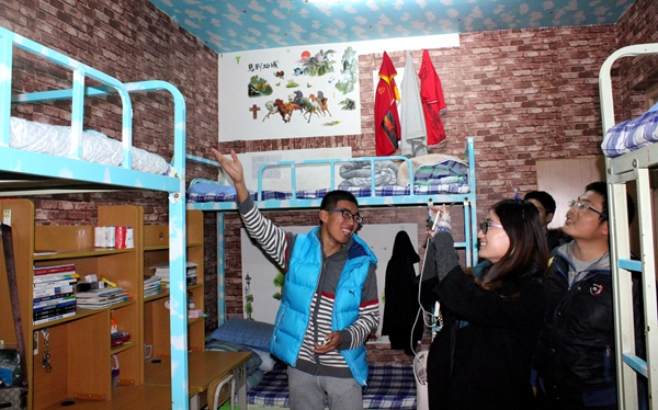(辅导员参观宿舍 金一苇摄影)