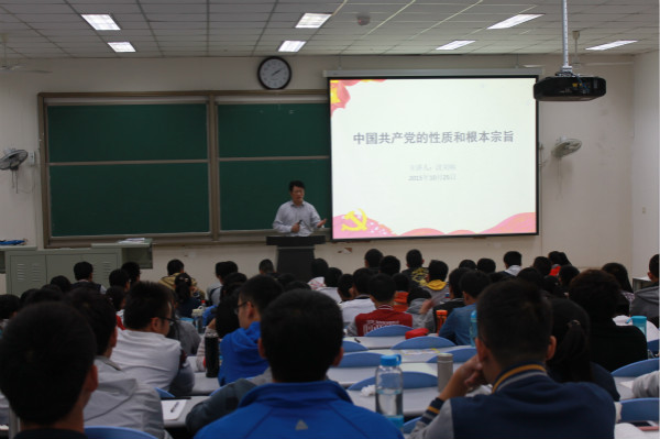 开班典礼之后,沈刘峡部长从为什么要上党课,应该如何学好党课谈起,引入了很多优秀校友的事迹,教育学员们要端正态度,树立正确的入党动机。随后他对党的性质和宗旨分别进行了阐述,对很多重要的定义进行了介绍,帮助同学们更深入的了解所学习的内容。最后,他结合互联网战争和我国的“一带一路”战略,鼓励学员们志存高远,满怀自信,明辨是非,敢于担当,做好中国特色社会主义事业的建设者和接班人。