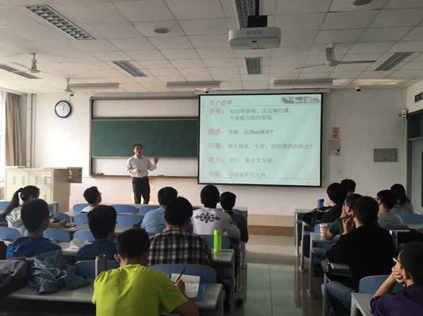 会上, 副院长王宇红教授首先就大三同学所面临的就业、考研、出国等选择进行了分析,教导同学们要根据情况做出选择,并且早做准备。田甜老师就优秀本科生出国交流项目和联合培养项目给同学们做了详细的讲解。最后,同学们提出自己的疑惑,与两位老师进行交流,同学们踊跃发言,气氛热烈。
