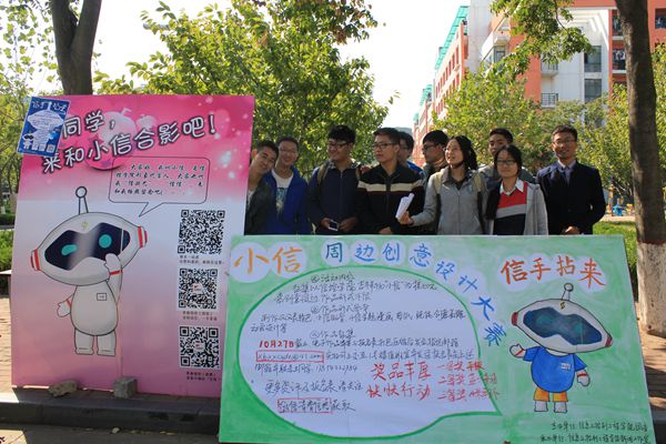 活动期间,工作室成员通过向来往同学老师派发传单,对感兴趣的同学进行具体的解释和指导。队员们用温馨的话语和热情的态度,向全校学生展示信控学院学生的风采,邀请学生们与“小信”合影等。这些活动加深了同学们对于“小信”和信控学院的印象,极大调动了部分同学对于设计的积极性,也使信控学院的敢于创新实践精神深入人心。
