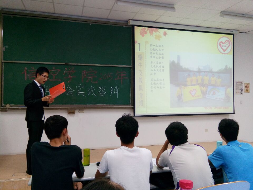 9月24日晚7点,信息与控制工程学院2015年暑期社会实践答辩会在南教119顺利举办。在活动负责人魏森龙的指导下,我院同心圆爱心支教队、“巴士style”实践队、“青之梦”实践队等25支实践队展示了实践成果。