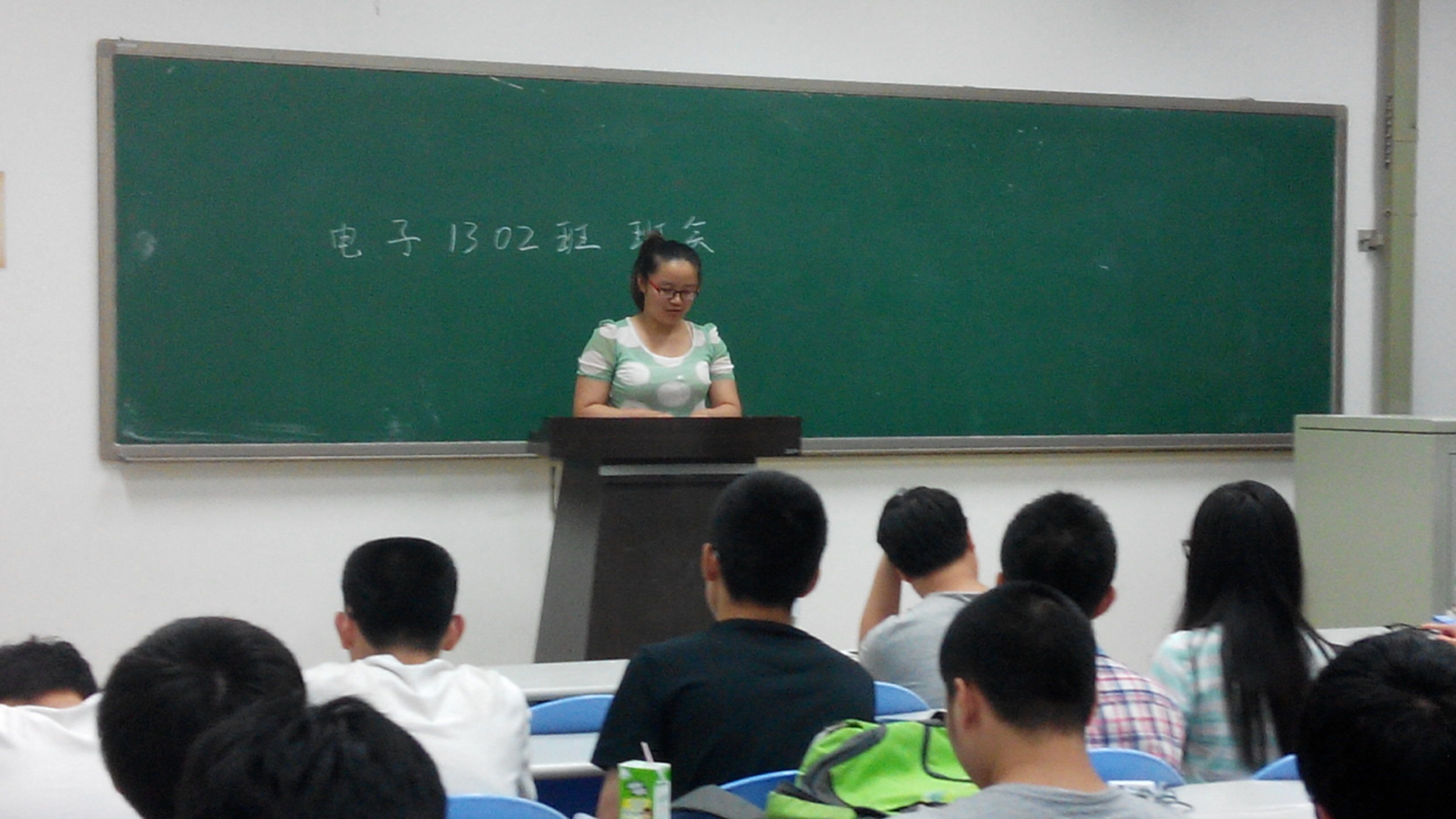 随后,电子1302班进行了班委换届选举,上任班委们纷纷对这两年来的学生工作做了总结发言,同时参与竞选的班委也发表了自己对新学期的看法和打算。