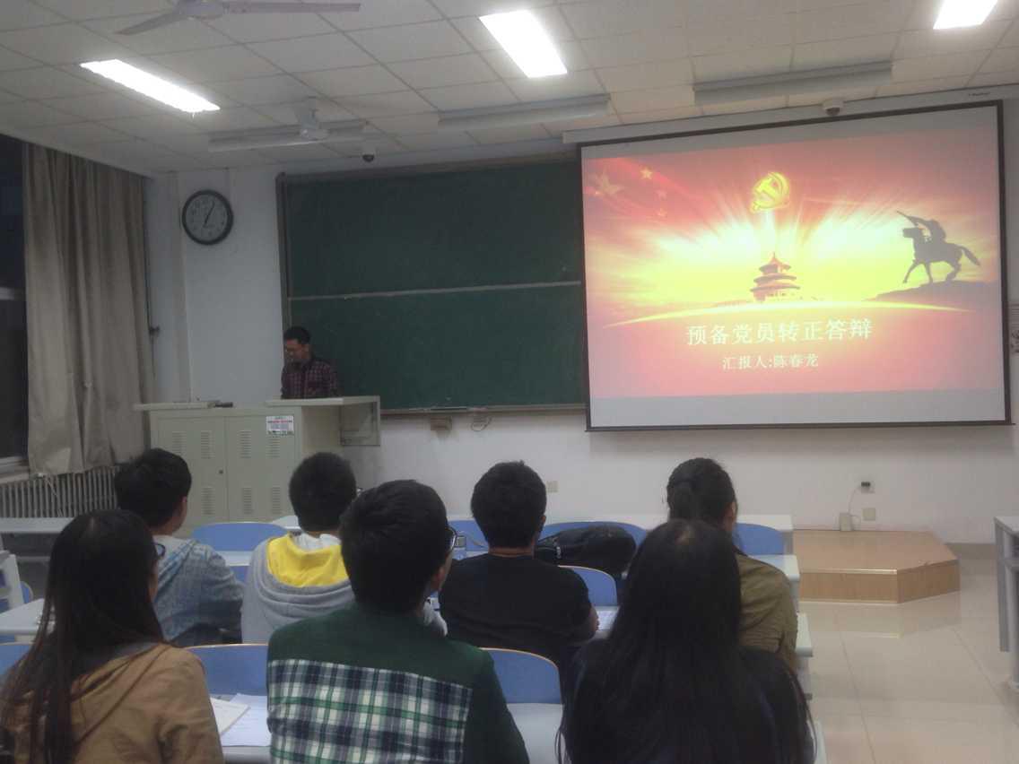 2015年5月21日,学院2012级电气专业第一党支部于南教116召开了支部大会,讨论预备党员转正事宜。预备期满的预备党员罗光凯同志和陈春龙同志依次进行了答辩,对自己预备期的进步情况进行了详尽的汇报。经民主评议,正式党员投票表决,两位同志顺利通过考核。