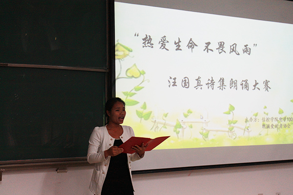 为纪念逝世诗人汪国真,我院电子1301班与朗诵爱好者协会联合举办“热爱生命、无畏风雨――汪国真诗集朗诵比赛”,比赛于5月10日晚7时30分在南教114举行,我院副教授刘广孚、13级辅导员王宁以及朗诵爱好者协会会长陈凯作为评委应邀出席。