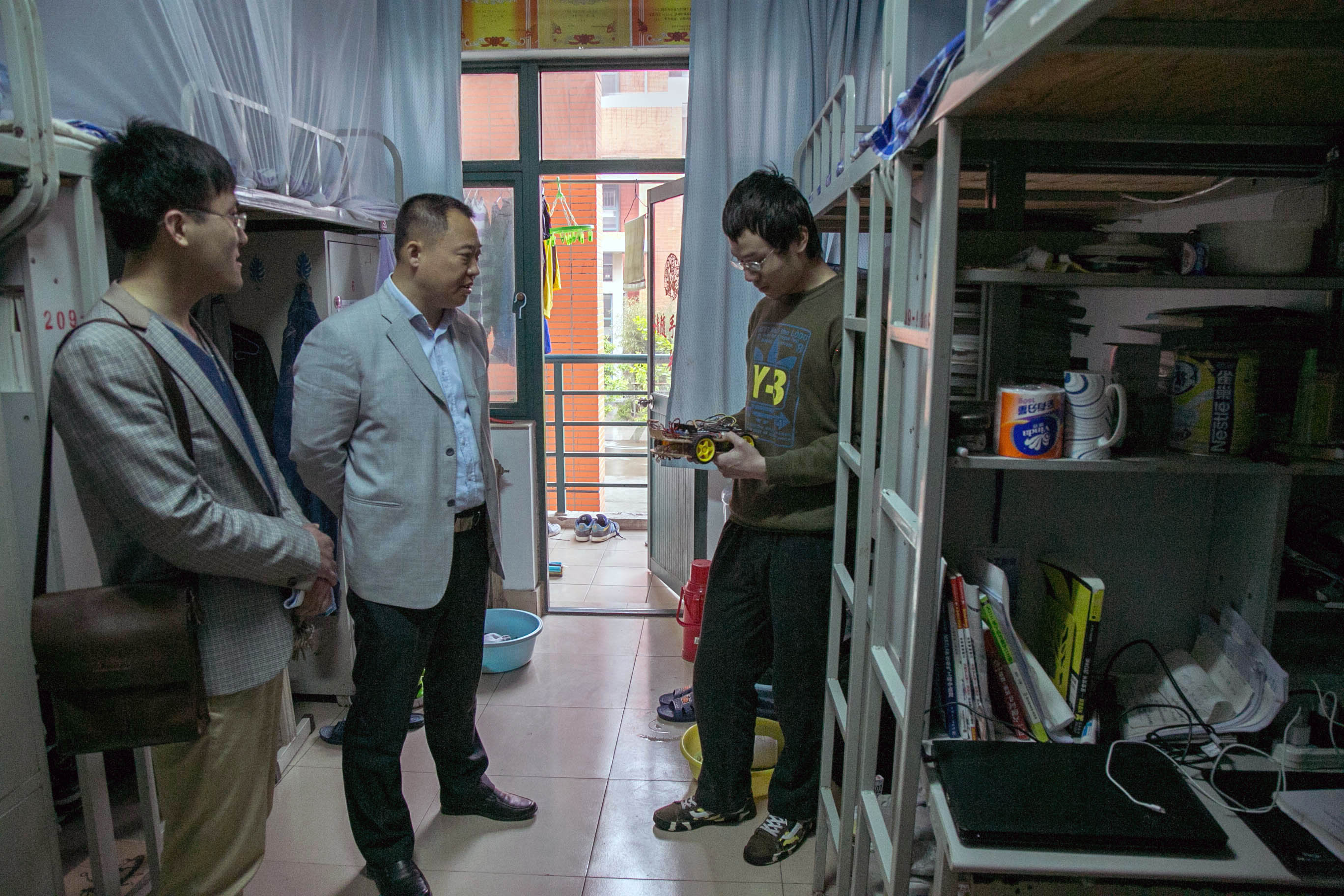 5月8日上午,付书记一行冒雨来到学院学生相对集中的10号公寓进行查看。走访过程中,付书记和辅导员们仔细查看了宿舍环境,并与学生交流了解同学们在学习、生活情况和思想动态。在与学生交流中,付书记多次强调做好宿舍安全和卫生工作的重要性,提醒同学们要共同维护良好的宿舍卫生环境,养成良好的生活习惯。对于的卫生情况较差,物品摆放杂乱的宿舍要求限期整改。并对发现的存在吸烟情况的个别宿舍,提出严肃批评。