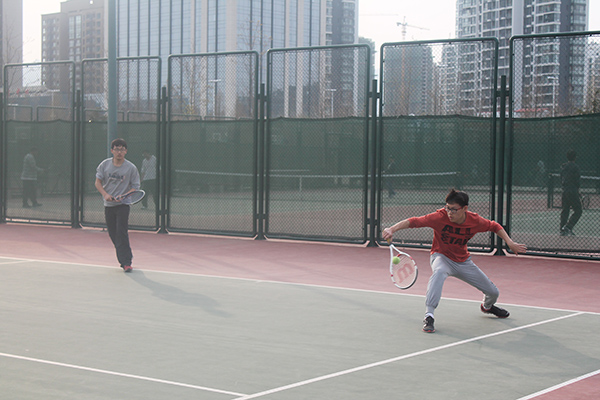 场上老队员手把手对新人进行指导,将自己所掌握的技巧以及以往比赛中获得的经验教训倾囊相授,新队员们在此基础上进行实战演练,纷纷表示获益不小。网协会长李保安介绍道:“目前协会共有约20名新成员,均来自我院14和13年级,他们有一定的网球知识和基础,但缺乏实战经验。为进一步提高他们的比赛作战水平,协会经决定自此后每两周进行一次指导性的战术和技巧培训,为学院网球队培养高水平的后备力量。”