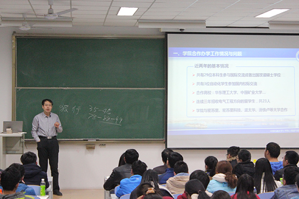 4月7日晚,院长耿艳峰教授于南教105为我院学生做了有关本科生出国留学的专题报告。副院长康忠健、党委副书记付罡、学院全体辅导员以及有出国留学意向的学生参加了本次报告会。