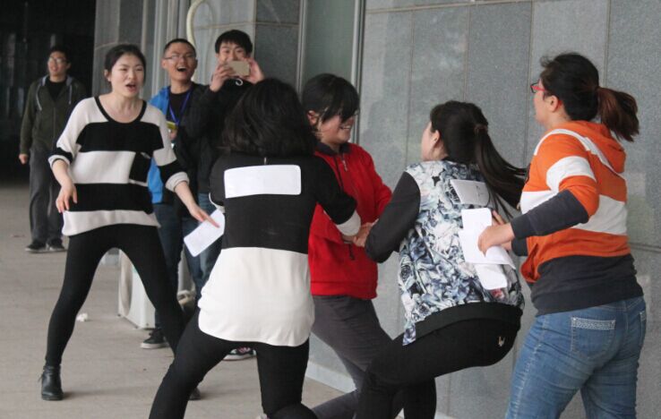 最为精彩的则是决战关――“撕名牌”,由于A队前几关成绩优异,获得了两张复活卡,C队获得一张,B队则没有复活卡。比赛刚一开始,各组队员纷纷小心谨慎地躲藏起来,趁对方不注意从背后偷袭撕取名牌,C队女生更是想出了用两名队员当做诱饵引诱B队追赶,其他人则是隐藏待命。看着突然出现的C队女生,B队损失惨重,一下子就有两名队员被罚下场。随后三队队员相互拼杀,有时躲藏,有时追赶,交锋场上女生们都不甘示弱,努力奋战。