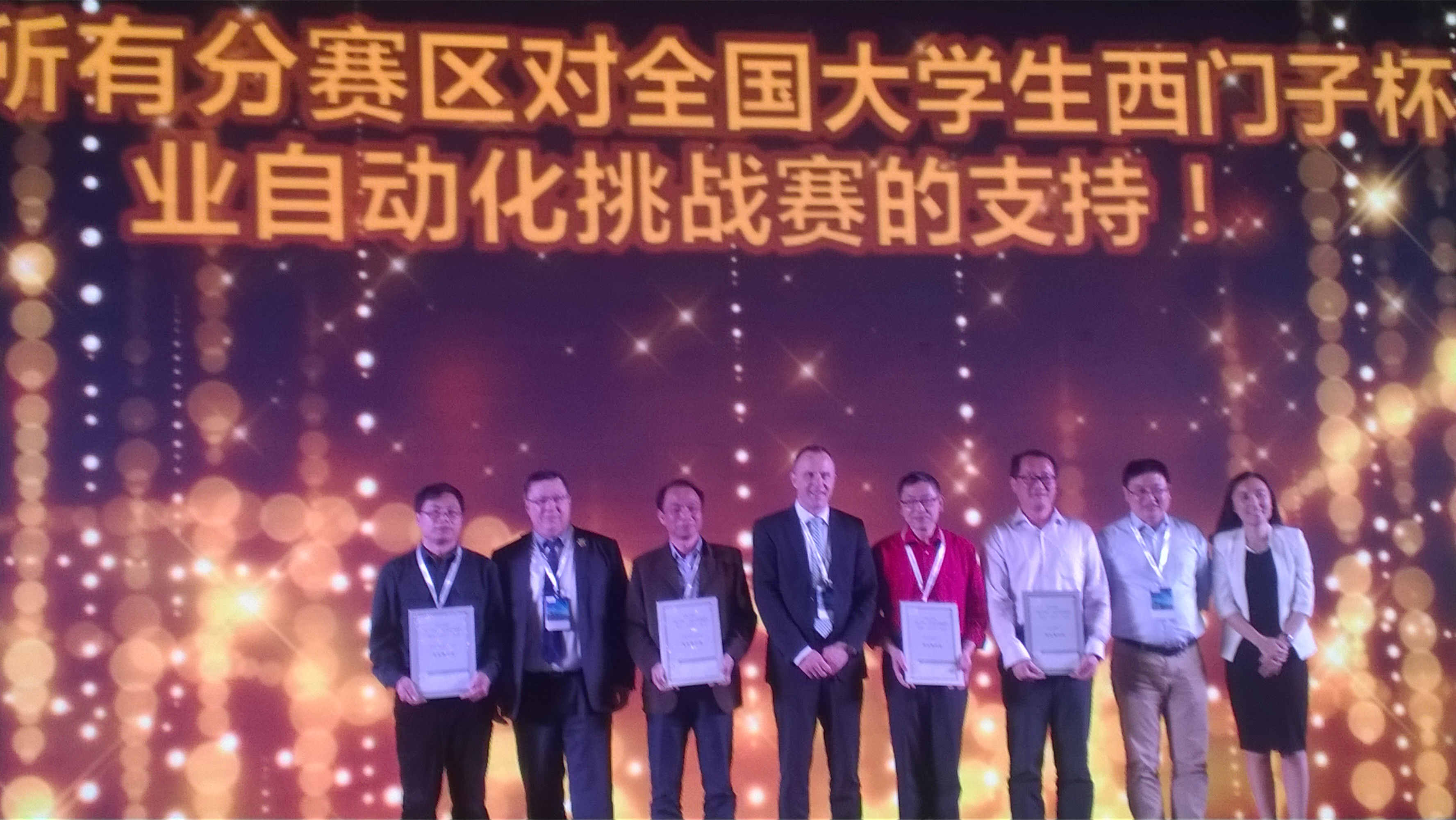 刘宝老师代表我校领取西门全国大学生“西门子杯”工业自动化挑战赛最佳竞赛组织奖