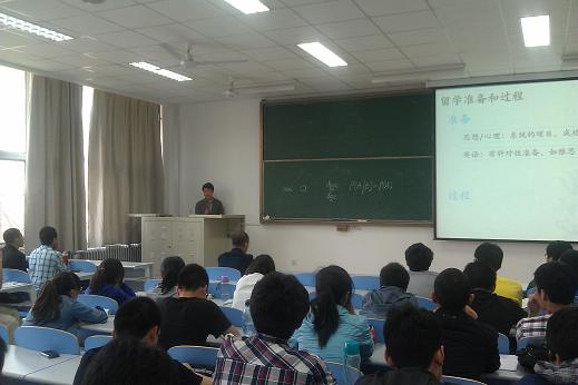 2012年5月16日下午,学院在南教119举办大学生出国留学知识讲座。此次讲座由我院任鹏博士、邢兰昌博士主讲,赵小明老师主持了本次活动,学院低年级大学生及研究生参加了此次讲座。