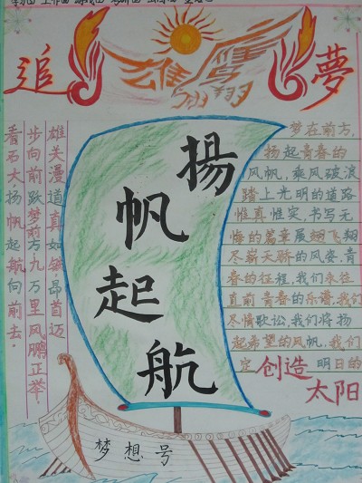 为了丰富校园文化生活,表达新生对美好大学生活的憧憬,凸显班级文化建设以及增强班级的凝聚力,信息与控制工程学院近期开展了题为“梦在前方,扬帆起航”的新生板报设计比赛。