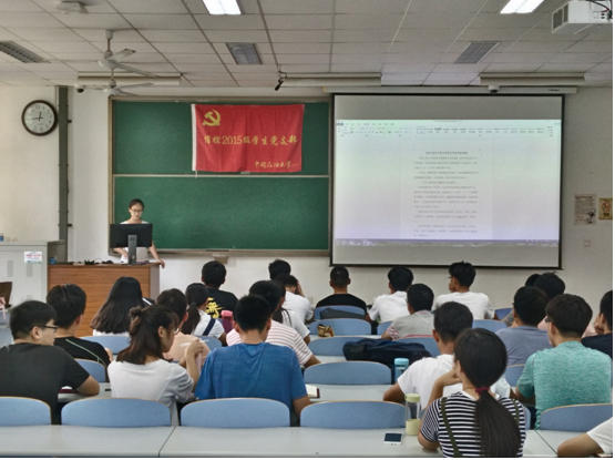 2017年9月22日,我院2015级学生党支部在南教117召开了本学年第一次党支部大会,大会由支部书记曾菲主持,支部全体成员参加。本次大会主要内容是总结2016-2017学年支部工作,制定、调整2017-2018学年支部工作计划,并明确相关要求。