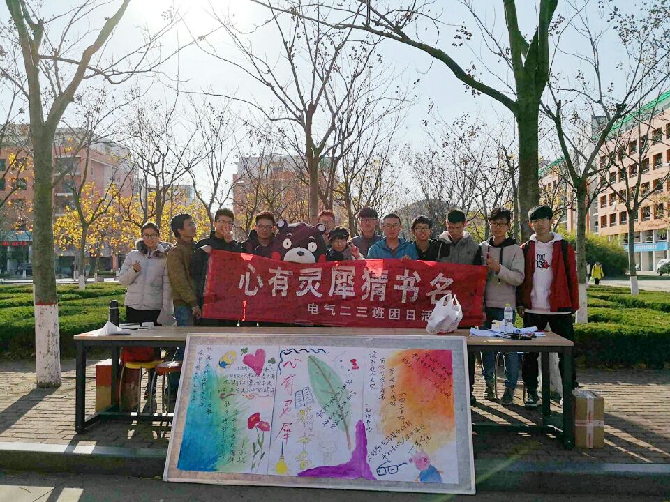 为了提升人们对纸质图书的阅读兴趣,增加大学生的阅读量,11月18日,电气1702班、电气1703班团支部在玉兰苑西侧举行了以“心有灵犀猜书名”为主题的团日活动。