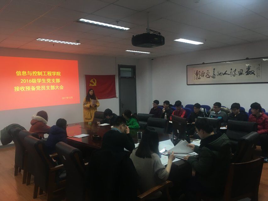 12月10日晚,我院2016级党支部于工科E1329室召开预备党员接收大会。会议讨论了包括刘禹奥等13名入党积极分子转为预备党员的事宜,由16级辅导员蒋仁福主持、16级辅导员刘秋蘅出席、16级学生党支部宣传委员蒋先强等参加。