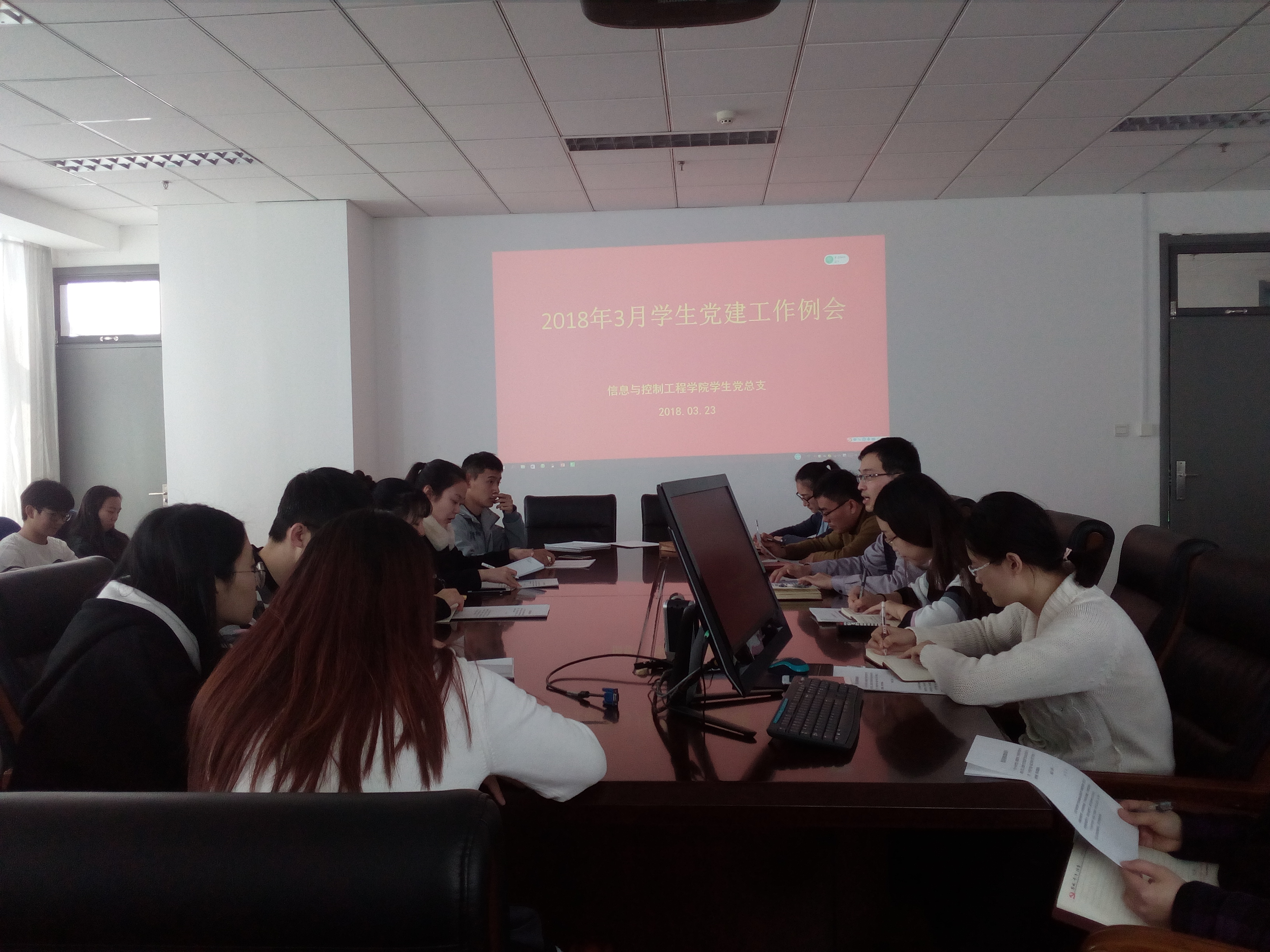 3月23日,学院学生党总支部在工科E1329室召开新学期学生党建工作例会,会议由学生党总支副书记姜飞主持,学院团委书记、2017级辅导员赵小明、2015级辅导员曾菲以及学院全体党支部书记参加。