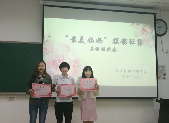 5月16日晚,在南堂402室举行颁奖仪式,并由杨岚进行主持,为各位获奖同学颁发证书及奖品。荣获一等奖的学生安雨童说道:“本次活动很有意义,记得荷马曾说过:‘青春会逝去;爱情会枯萎;友谊的绿叶也会凋零。而一个母亲内心的希望比它们都要长久。’我觉得母爱是世界上最伟大的感情,她孕育了我的生命,伴我成长,为我付出一切,我很感动,却又羞于表达,刚好借助本次活动大声的说出了对妈妈的爱,妈妈很开心,希望在之后的日子里我也能多表达对妈妈的爱,让她明白我的心意。”