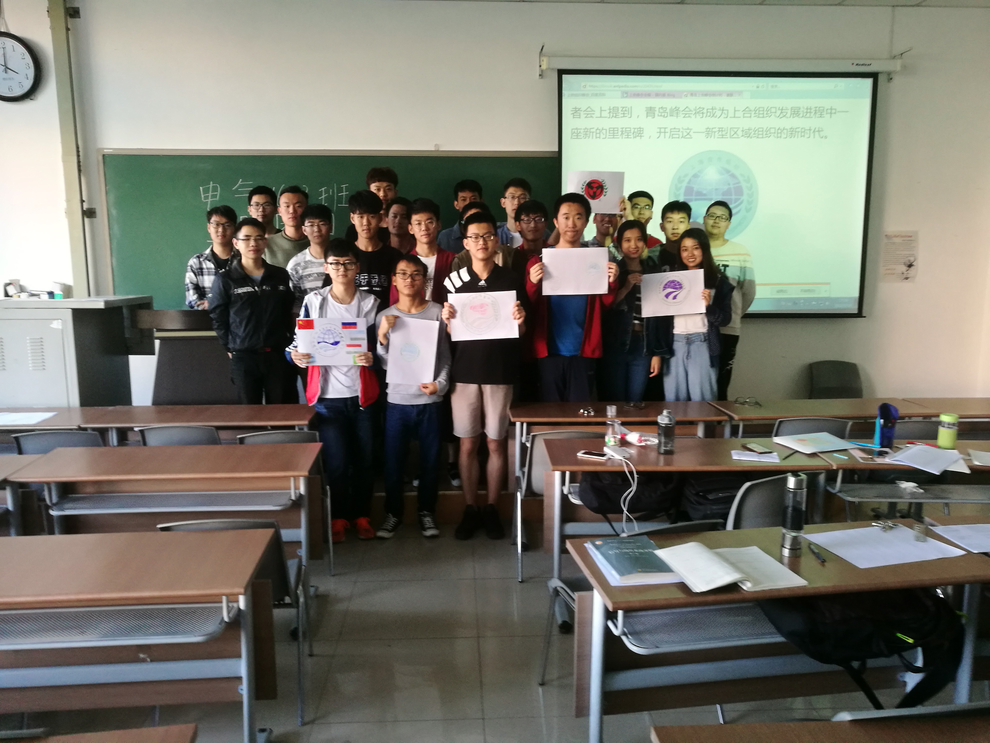 上合峰会即将于6月在青岛举行,这是一次影响巨大的主场外交峰会。为了使学生们更加深入的了解上合组织与上合峰会,电气1603班举行第一次团日活动,旨在向学生们普及有关峰会的知识,以更好的迎接上合峰会的到来。活动开始,史成熙通过ppt展示了上合组织的宗旨、成员国、发展历史以及成立意义,使学生们对峰会有了初步了解。史成熙还通过几个新闻视频回顾了上合组织的历次峰会和本次峰会选址青岛的意义。之后,学生们五人或六人一组,拿起画笔,用一幅幅画表达对上合峰会成功举办的祝福。
