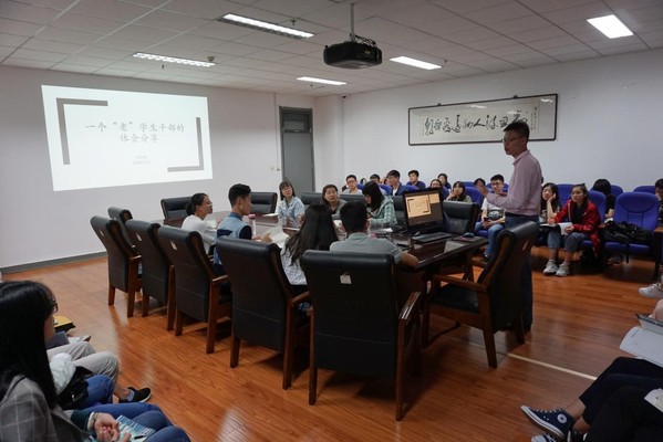 此次活动由信控学院团委副书记李晓辉同志向学院各级团支部学生干部做有关如何当好学生干部的经验分享与交流。李晓辉同志是我院2016级控制科学与工程专业硕士研究生,在校期间担任院研究生会主席等职务,曾荣获山东省优秀学生干部、十佳团员标兵等称号,具有丰富的学生工作经验。活动开始,李晓辉师兄通过通俗易懂的话语以及简洁精炼的演示文稿向学生干部们展示了自己作为一个“老”学生干部的心得体会以及实际经验。而后,李晓辉同志通过“定位””初心””前行”几个方面与在场的团支部学生干部们探讨交流了自己对于什么是学生干部、为什么要做学生干部、和怎么样做好学生干部等问题的看法。最后,针对目前学院团支部学生干部中存在的一些问题,李晓辉同志对在场的各位团支部学生干部提出了几点建议与期望,希望同志们可以独立思考、戒骄戒躁、保持内心的阳光并且要勇于担当,为同学们服务,做好学生干部这一工作。