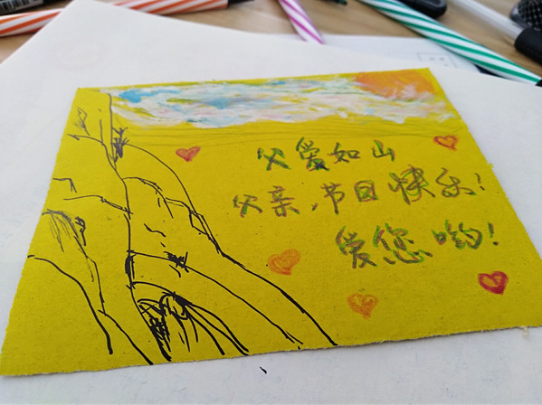 电子1703班的活动分为两大部分进行。书写感激,纸短情长:6月17日上午,电子1703班团支部在活动室借以书信和卡片的形式来抒发对父亲的感激之情。父爱如山,厚重无言,同学们对父亲的爱则简单直白,只见同学们在贺卡上大胆表白:“父爱如山,父亲,节日快乐!爱您哟!”虽然只是寥寥数语,但字字真情,单纯真挚。想念不用时常挂在嘴边,要用行动表现;祝福无需点缀华丽语言,唯真诚最关键。