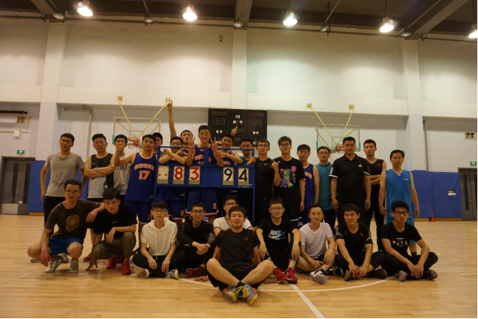 随着裁判一声哨响,队员们立即进入紧张的迎战状态。研三师兄队首先跳得球权,首节便凭借出色的发挥领先四分进入次节。第二节,毕业师兄队队员李磊直接快攻杀到篮下,2+1打进!研一研二联队虽然有所调整,但是仍然没有机会将比分拉近,师兄队不断地全场快攻和内线强吃,半场结束,建立起了10分以上的领先优势。易边再战,研一研二联队发起反扑,连连发起进攻,打成2+1,一度将比分迫近至4分。比赛进入白热化阶段,篮球在队员手中来回传递,你争我夺,场面十分激烈。“控制节奏!不要急!”“防人防人!好样的!”每一次进球都伴随着场外拉拉队的喝彩声。最后一节,由于研一研二联队接连的失误让师兄队抓住机会,接连得分,最终将比赛得分定格在94:83,以领先11分的优势赢得比赛,获得了此次比赛的冠军。