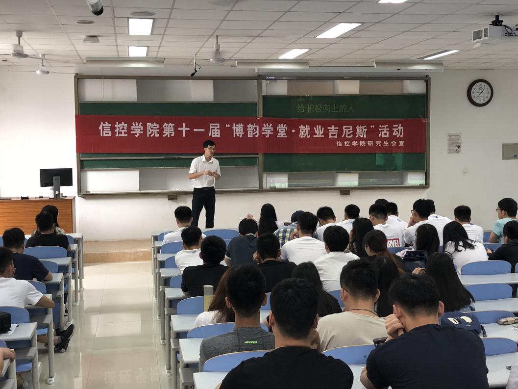 2018届毕业生就业工作逐渐接近尾声,为了充分发挥就业典型的示范作用,将就业经验传递一下去,信控学院于6月24日在南教404举办“博韵学堂——2018届毕业生经验交流会”,辅导员姜飞老师与学院研究生一同参加了本次活动,活动由研究生会张新铭主持。