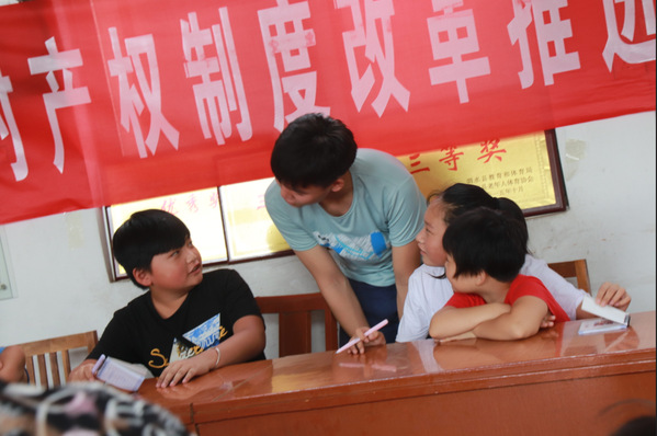 29日上午,在济宁市泗水县星村镇办公室主任兼团委书记王浩的带领下,蜗牛支教队全体成员到达北陈村。在北陈村的乡村儒学讲堂,各个年龄段的学生们都在翘首以待,期待着支教团队的到来。共有41个学生参加本次活动,学生们年龄参差不齐,其中有5个初中生,大部分是小学生,有几个幼儿园刚刚毕业的准小学生也在家长的陪同下前来参加此次开学典礼。在介绍了团队成员和此次支教目的后,伴随着在场全体人员的掌声,管增嘉宣布支教启动。接下来的环节中,支教队队员进行了各具特色的自我介绍,队员霍月的自我介绍“我叫霍月,霍元甲的霍,月亮的月,所以接下来我要给你们讲星星和月亮的知识,也就是天文知识”赢得了在场学生的喝彩。之后,支教队队员罗静宜带领学生们玩起了击鼓传花的游戏,朱月茹教给学生们做手工折纸,现场气氛变得活跃起来。最后,队员们对不同年级的学生们的知识量做了了解,以便为接下来的讲课做出准备与调整。学生们结束学习离开后,支教队员们在学堂举行了一次临时会议,对今天的收获和接下来计划的调整做出了安排。