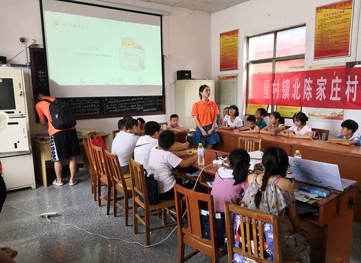 经过简单调查,发现北陈村由于经济问题,大量年轻劳动力流失,使得该村的留守儿童现象突出,很多孩子父母外出打工或者只有妈妈在家陪伴。基于此,在镇政府的支持下,蜗牛支教队安排了各种丰富有趣的课程和课余活动,如折纸、绘画等。除培养兴趣的课程外,还安排了时间帮助孩子们完成暑假作业。使他们的暑假生活不再枯燥,潜移默化之中培养他们的兴趣和特长。