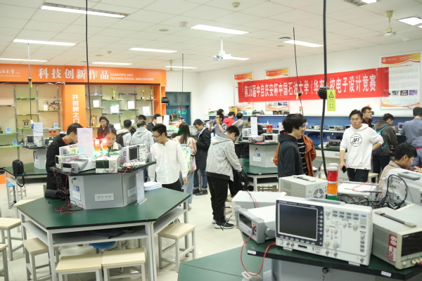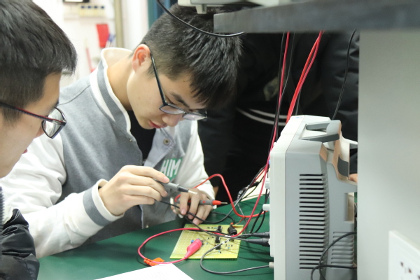 本次电子设计大赛的题目分别由李超、薛焕昇、吴鸿声、王远泽四位同学命题,并由王远泽、薛焕昇、吴鸿声、张志涛、俞心怡、付发六位同学担任评委验收每个队伍的设计报告与实物,然后进行现场打分。活动开始时,每个队伍有序的在教室门外排队,进行验收的队伍按照评委的要求反复调试自己的作品,以求得更完美的波形,更完美的展示。验收过程中,每个评委不仅仔细评判作品质量,更对每个队伍对作品的设计,调试等方面提出建议,并实地进行指导,让同学们在展示的过程中获得进步。太阳集团tyc234cc电子设计大赛已经成功举办了十五届,是信控学院科技协会的一大特色比赛,每年都能吸引大量的信控学院和其他学院的学生来参赛,第十届电子设计竞赛共吸引两百支来自不同专业不同年级的队伍来参赛,参赛人数接近人。