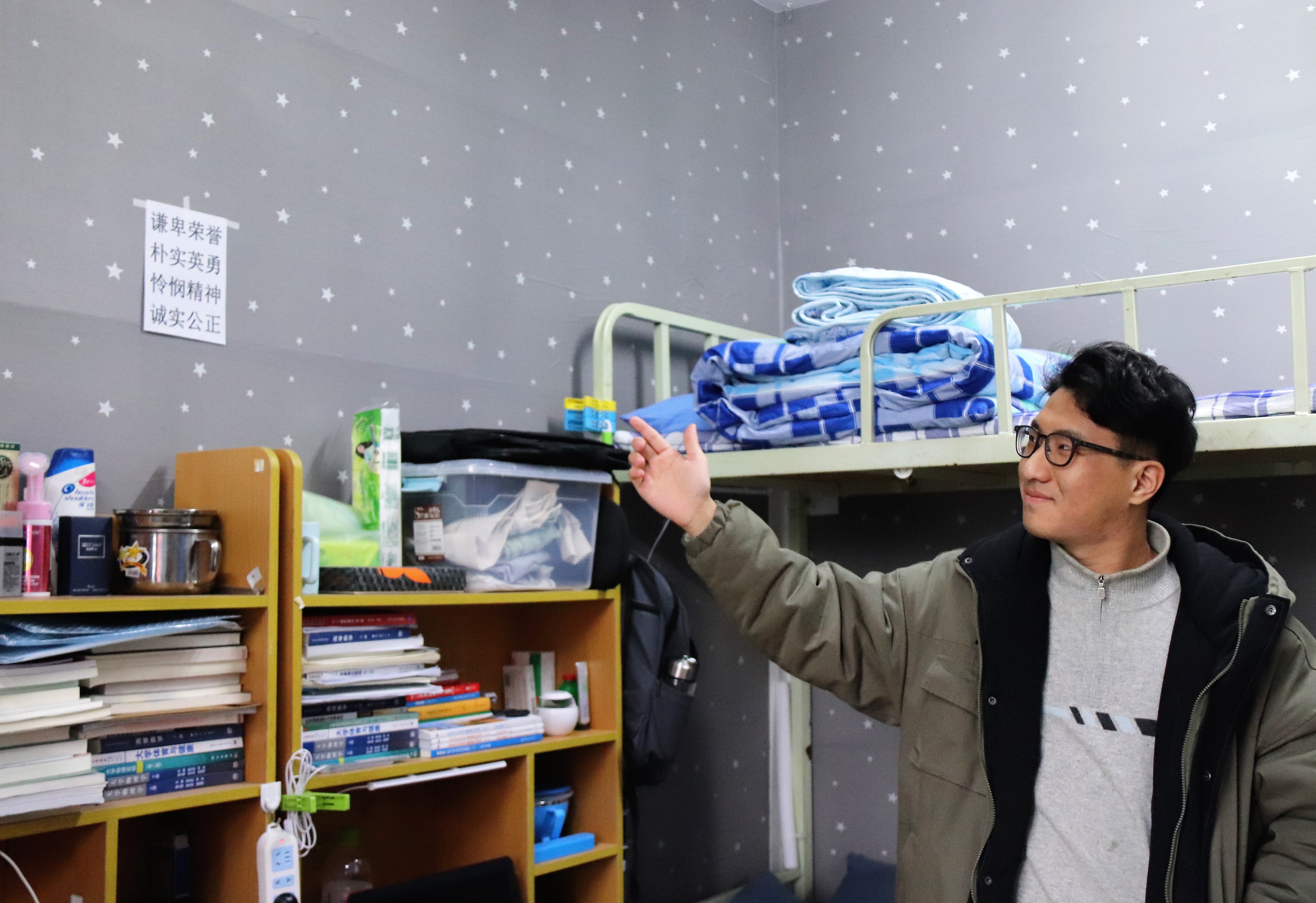 12月8日下午,我院宿舍文化节系列活动之宿舍装饰大赛在我院2018级各宿舍开展,学生会生活权益部部长杜艳明带领生活部全体人员作为评委深入各宿舍进行打分。