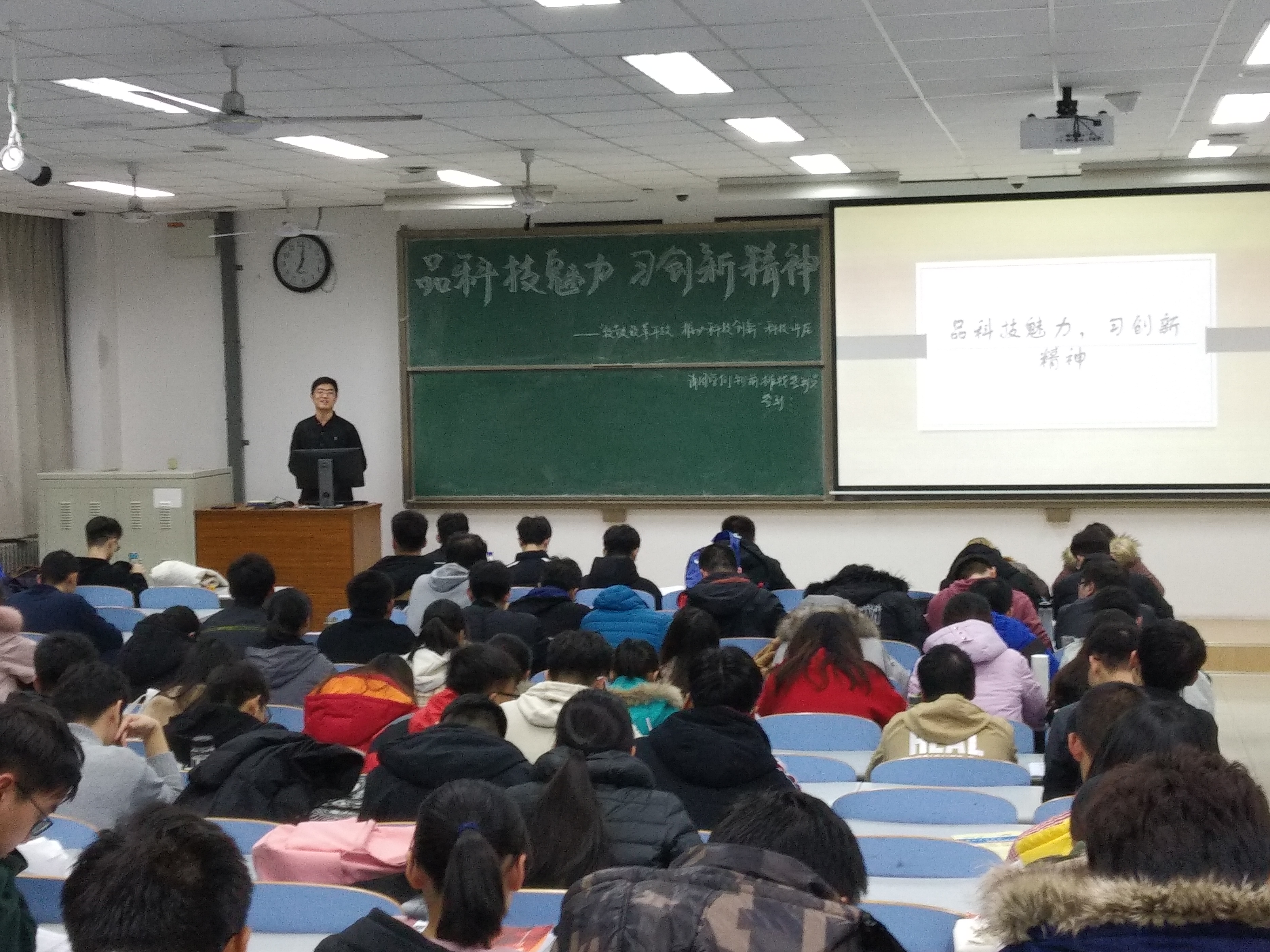 为致敬改革开放四十周年,响应习近平总书记号召,推动科技创新,12月25日晚7点,电子1602班团支部和电子1603班团支部在南教楼204教室联合举办“品科技魅力、习创新精神”主题团日活动。