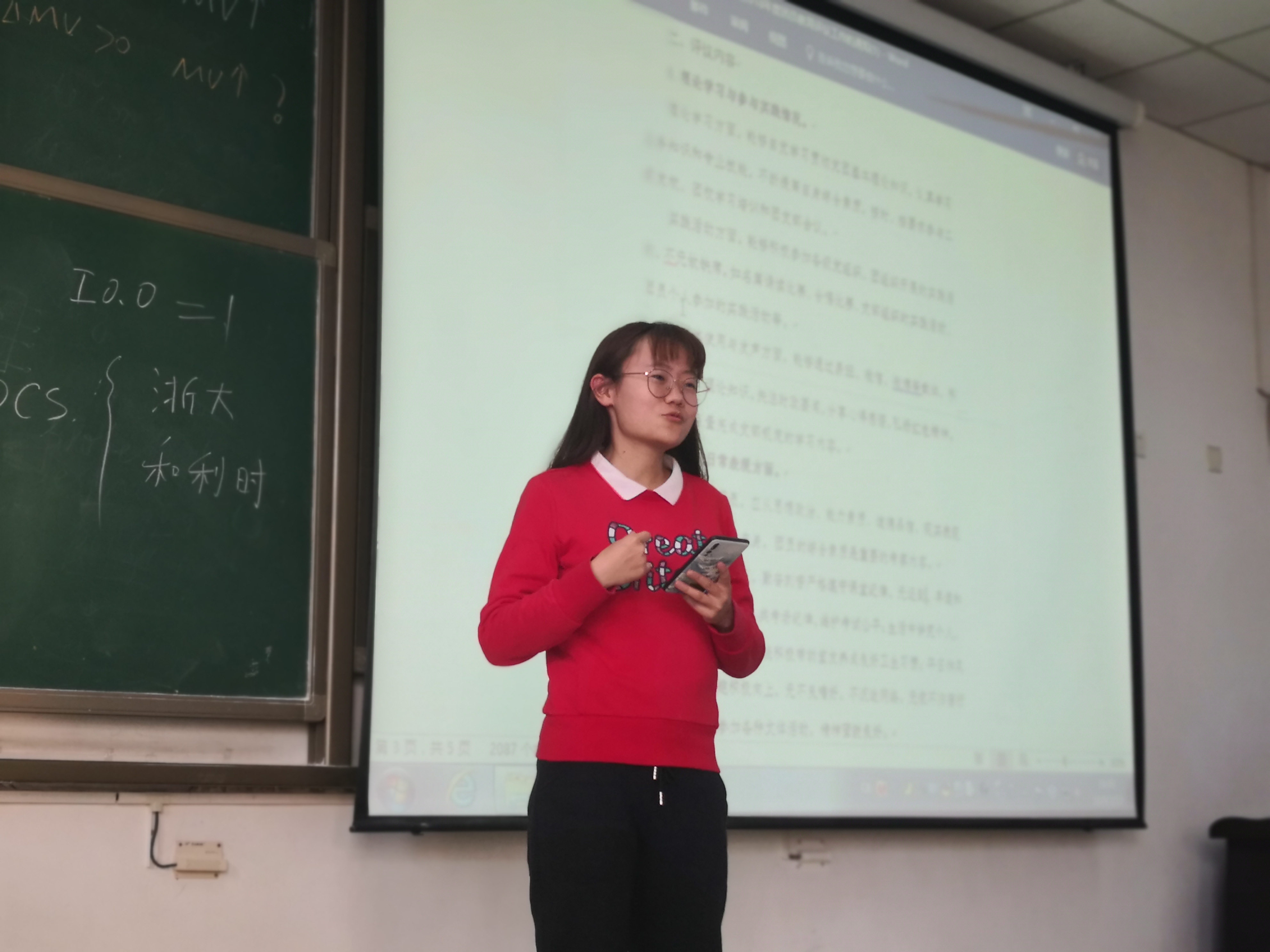 会议伊始,团支书温书远向全班团员介绍了此次团员互评大会的流程及意义。他说,今天不仅仅是给别人评议,也是对自己阶段性更深刻的认识,肯定自己优点反省不足之处。接着,学生们逐一到讲台上进行1到3分钟的自我介绍,包括学习科研、社会实践、学生工作等方面。台下学生认真的倾听、鼓励的眼神给予了台上的同学支持,温书远也时常引导学生从新的方面进行评议,以避免进行雷同的自我介绍。“我严格要求自己,时时处处以身作则、率先垂范,能在支部工作、学生工作中,担任职位,发挥突出作用”,“我能够积极主动地参加各类层次的创新创业和文艺体育类竞赛活动等,获得突出的成绩”,“我能够在志愿服务或者社会实践工作中展现良好风貌”,“平日作风正派,生活情趣积极向上,无不良嗜好,不沉迷网络”......学生们认真地上台自评。