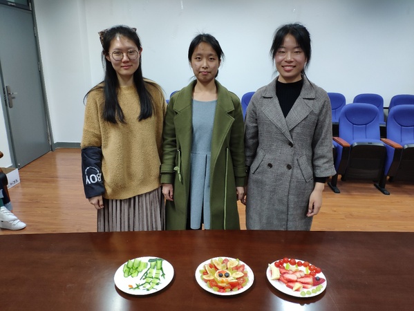 活动伊始,团支书张胜涛表示,随着我校思美节的进行,我们团支部策划开展这项展现女生创意与手艺的水果拼盘活动,让女生们体验学术外的生活乐趣。随后张胜涛同学介绍了水果拼盘比赛的规则和注意事项。用来摆盘的水果有12种,女生以宿舍为单位分为三组,后进入团学知识抢答环节,最快说出正确答案的组优先选择水果,但每组最多拿4种水果。