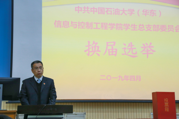 4月14日晚,信息与控制工程学院学生总支部委员会换届选举大会在南教100召开,学生总支部委员会委员、学院团委书记姜飞主持大会,学院党委副书记苏兴及263名师生党员参加大会。