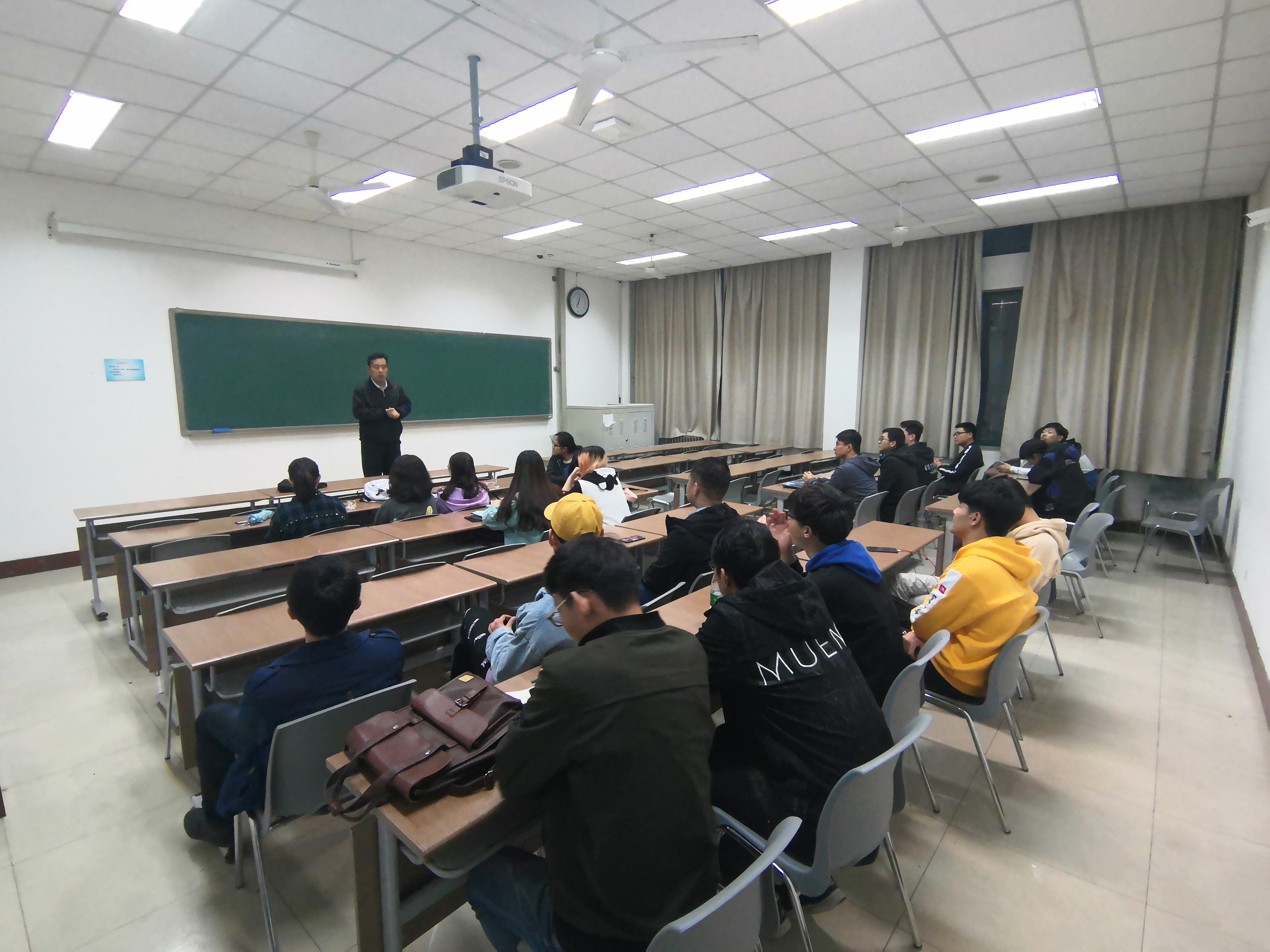 4月20日晚,测控1603班全体学生于南堂楼314室召开本学期班会,学业导师季文海就“一颗红心,两手准备”为题,对学生们所关心的考研以及就业问题进行讲解。