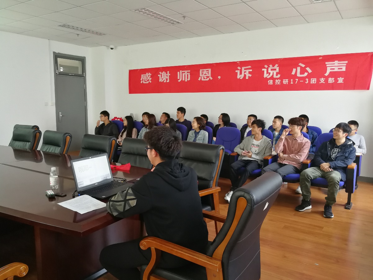 为了让同学们了解身边这些“好老师”,激发同学们对老师、对祖国的感恩之心。2019年5月12日,我院研17-3团支部在工科E座1329开展“感谢师恩,诉说心声”主题团日活动。研17-3团支部全体成员参加。