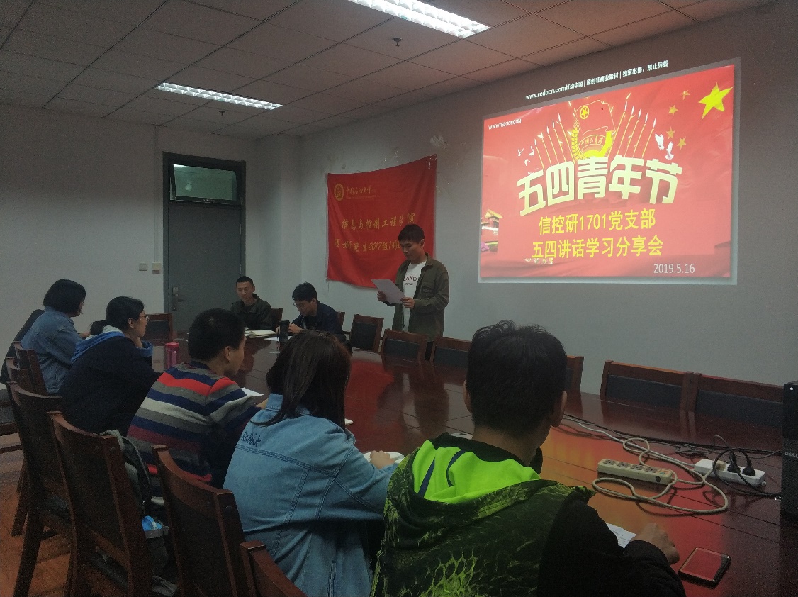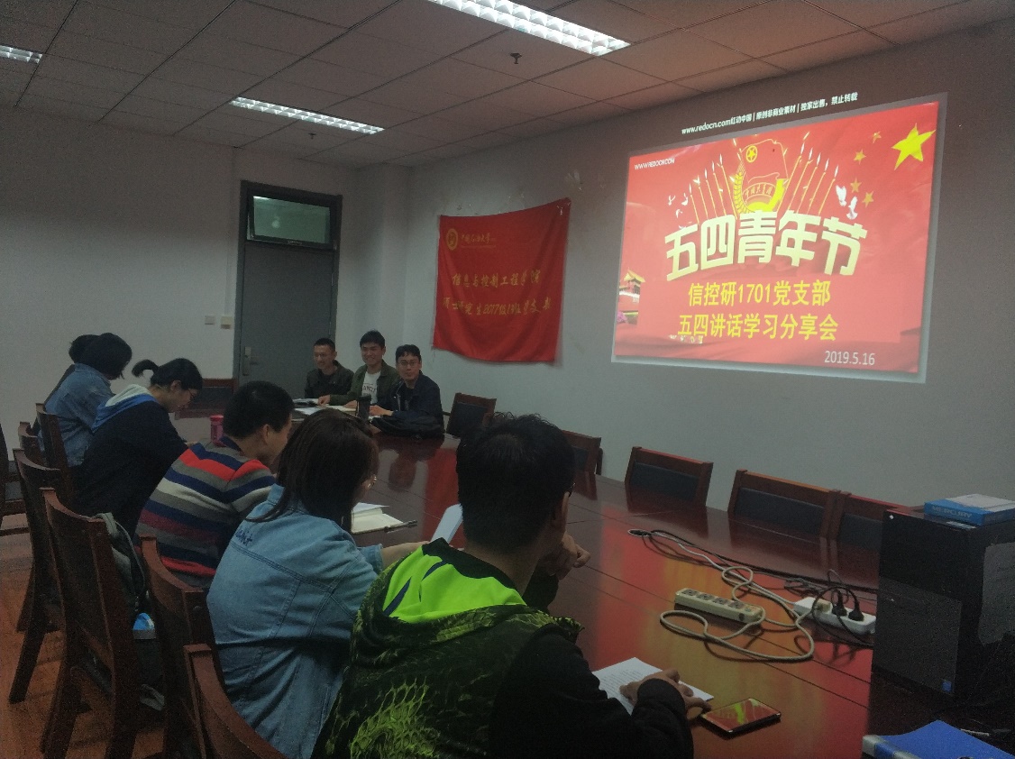 为弘扬五四精神,深入领会习近平总书记系列讲话精神,我院研17-1党支部于5月16日晚7点在工科E1325开展了关于“习近平总书记在纪念五四运动一百周年大会上的讲话”学习分享会,支部党员、积极分子等十人参加了此次会议。