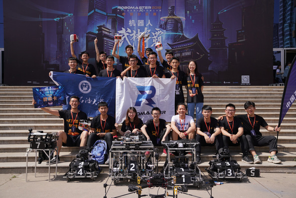 根据比赛要求,各参赛队伍需自主设计研发出步兵机器人、英雄机器人、工程机器人、哨兵机器人和空中机器人共5个兵种6台机器人,组成机甲战队,在布满机关的战场中寻找敌手,进行射击对抗,完成比赛。本次分区赛吸引了中国矿业大学、上海交通大学、华中科技大学、中国石油大学等34所高校队伍参加,经过热身赛、小组赛、晋级赛、淘汰赛等多轮比拼,我校先后对战了西安电子科技大学、南京理工大学、太原理工大学、太原工业学院等9支队伍,并在淘汰赛中以2:1的成绩成功淘汰了去年中部分区赛冠军东北林业大学,夺得2019全球总决赛参赛资格。现在,队员们已经投入了新一轮紧张的备赛工作中,将于8月初与来自全球的31所高校展开激烈角逐。