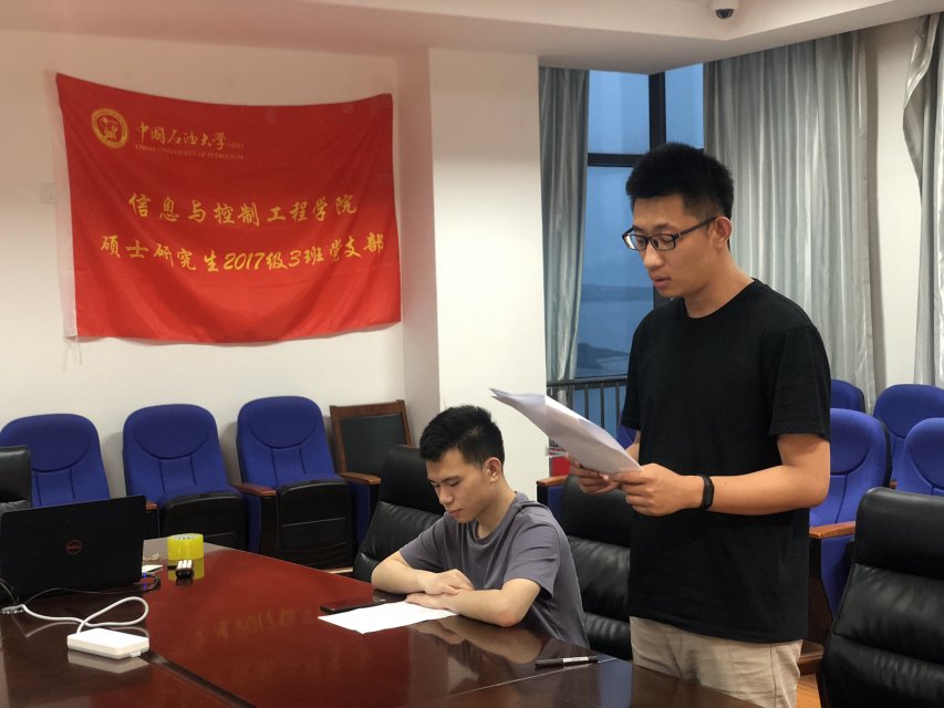 6月19日晚,我院研17-3党支部于工科E座1329会议室顺利召开了预备党员接收大会,大会主要讨论了关于是否接收吴玉兴、邵康两位同志为预备党员的问题。此次会议由党支部书记古丽帕丽同志主持,会议应到党员7人,实到党员6人,请假1人。