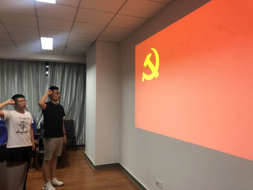 会议伊始,古丽帕丽同志报告了出席会议的党员人数及应到人数,宣读了本次会议的主要流程。紧接着,入党申请人邵康、吴玉兴同志宣读了《入党志愿书》,汇报了自己的入党动机、本人履历、家庭和社会关系的基本情况以及需要向党组织说明的问题。随后,入党介绍人肖尧、赵振东、古丽帕丽、李旋同志分别介绍了相应入党申请人的政治表现、思想品质及生活作风,均表示作为其入党介绍人介绍该同志入党。在支委会宣读对邵康、吴玉兴同志的政审情况后,请申请人回避,与会党员对于两位同志能否入党进行了充分的讨论,并对进行了无记名投票。接着,申请人入场,由党支书古丽帕丽宣读表决结果:全票通过,同意邵康、吴玉兴两名同志加入中国共产党。最后,两位同志面对党旗,郑重宣誓。