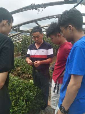 姚经理还带领全体调研成员实地前往了位于崂山脚下的茶叶种植园进行参观,并且对崂山茶的种植特色进行了分析介绍,调研队长彭煜同姚经理对崂山茶种植中存在的问题展开了深入探讨。随后几天团队成员在工人师傅的讲解下参观了室内的茶叶加工设备,进一步了解了崂山茶的加工工艺,最后就当地旅游业带动茶叶销量等做了全面的分析。